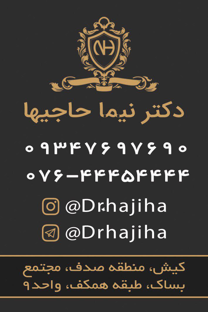 کیش، میدان سنایی، مجتمع بیست، طبقه ۳، واحد ۳۰۹، دکتر نیما حاجیها