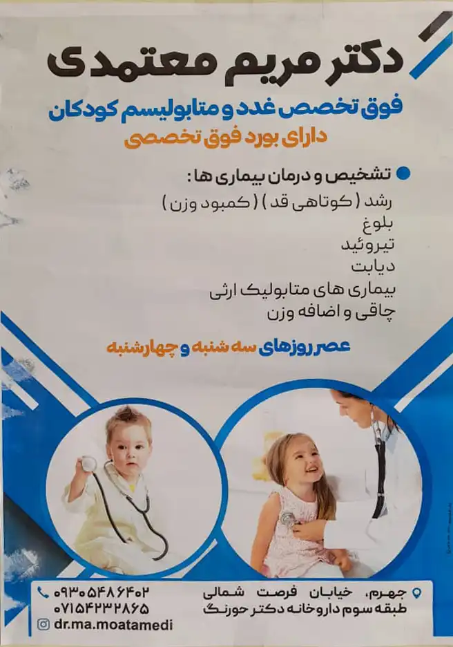 دکتر خوب غدد برای کودکان در شیراز مریم معتمدی