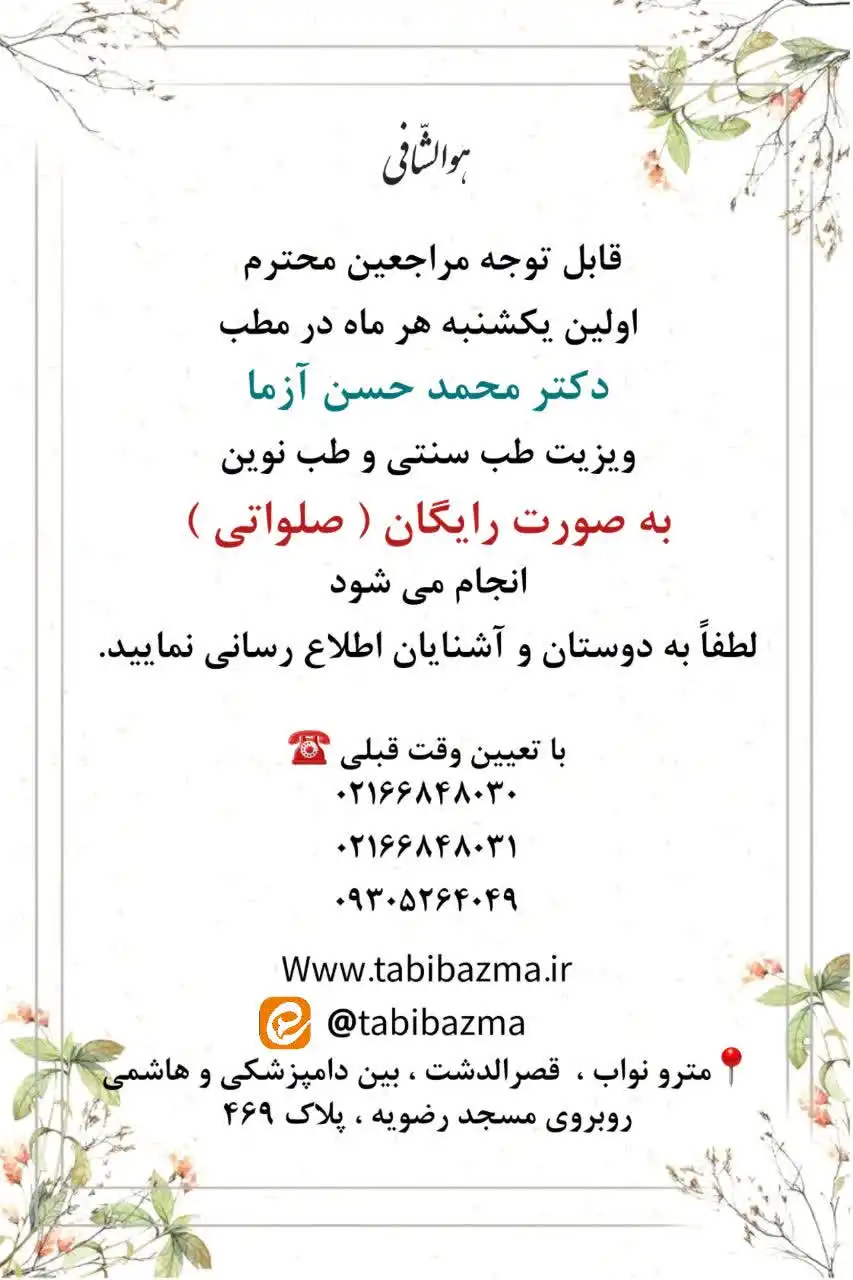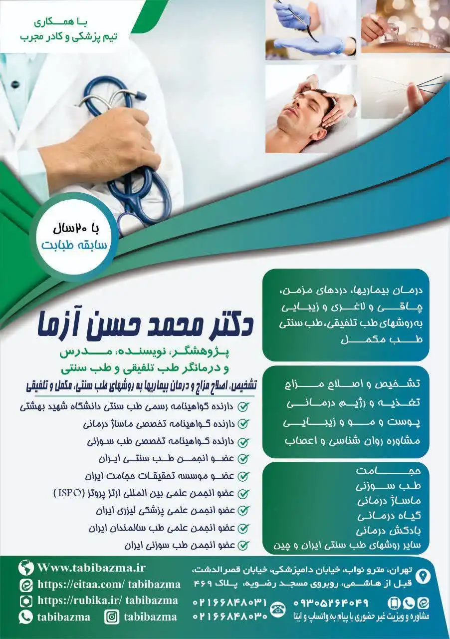 توسط🩺حکیم دکتر محمد حسن آزما (پژوهشگر، نویسنده ، مدرس و درمانگر طب تلفیقی و سنتی)