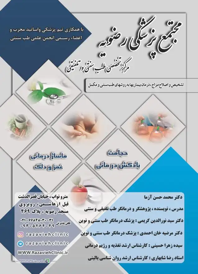 تهران، مترو نواب، خیابان دامپزشکی، روبروی مسجد رضویه، پلاک ۴۶۹، مرکز طب سنتی دکتر آزما